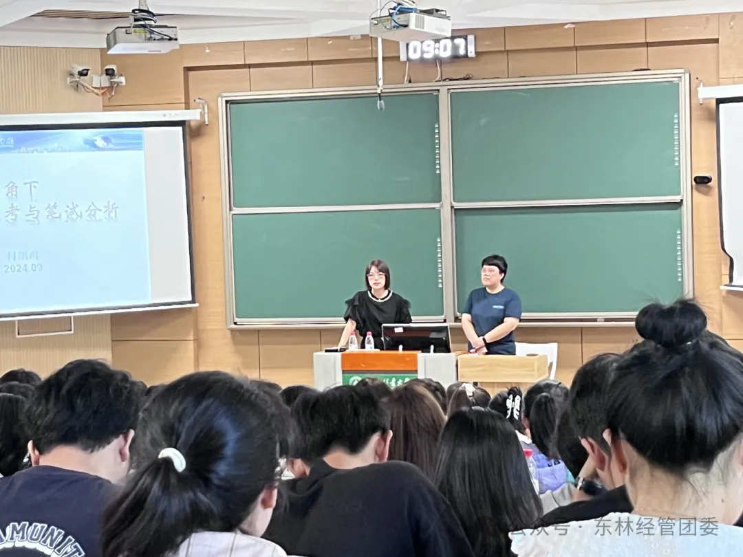 黑龙江省统计局付鹏鸿同志以《大数据视角下公务员报考与笔试分析》为题,通过大量数据和实际案例,从公务员报考条件、岗位情况、复习备考技巧等方面具体分析了研究生报考公务员的选择策略,引导新生同学从入学之初树立正确的择业观、就业观,做到干一行爱一行,爱一行钻一行。